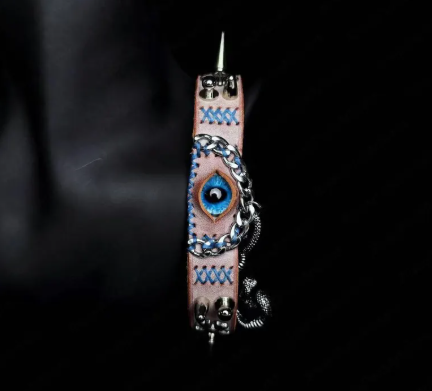 Carefully handmade from high-quality leather and alloy, the necklace is both durable and comfortable, with an adjustable strap that fits most neck sizes. Its striking design makes it a standout accessory for gothic fashion, cosplay, punk aesthetics, or alternative streetwear.