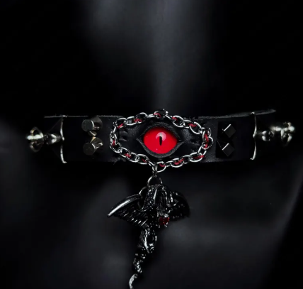 Material: Black leather + alloy + eyeball centerpiece