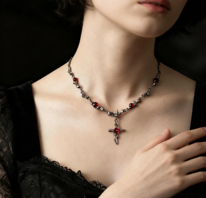 Perfect for gothic, punk, or alternative fashion lovers, this necklace adds a bold statement to any outfit — from night-out looks to everyday streetwear.
