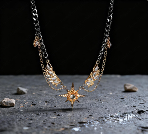 Perfect for those who love angelic, ethereal, or alternative jewelry, this necklace shines with both sophistication and symbolism — a timeless piece that turns every moment into something extraordinary.