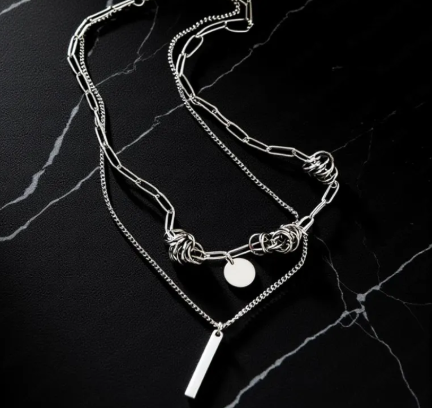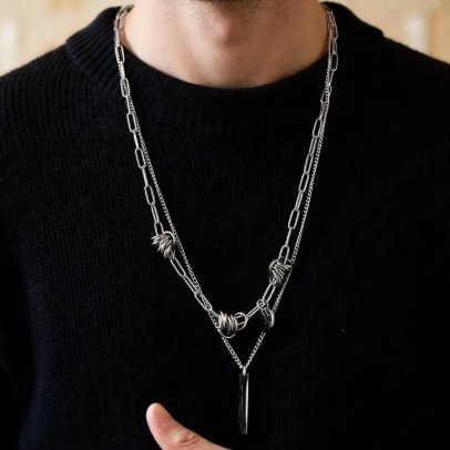 Step into urban rebellion with the Industrial Edge Necklace, a striking fusion of punk aesthetics and modern industrial design. Featuring a layered titanium steel chain accented with a minimalist bar pendant, this necklace exudes strength, style, and bold individuality.