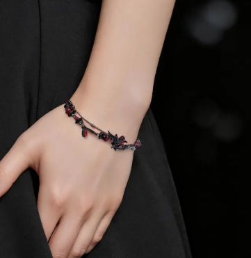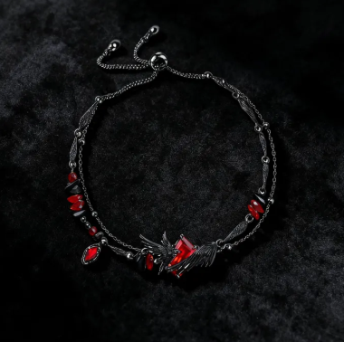 Featuring black and crimson tones intertwined in a layered gothic design, this adjustable bracelet captures the essence of dark beauty and rebellion.