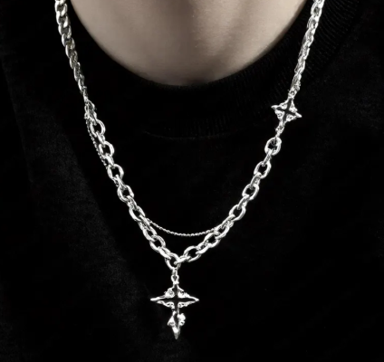 Crafted from high-quality titanium steel, the pendant is durable, corrosion-resistant, and lightweight, while the sleek chain ensures a comfortable fit. Its versatile design suits both E-boy and E-girl fashion, adding a bold statement to streetwear, concerts, cosplay, or everyday alternative looks.