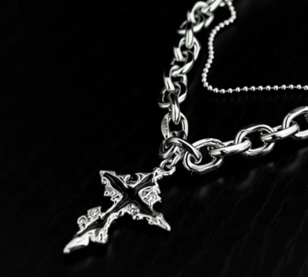 Embrace the edgy allure of the night with the Thorned Cross Necklace, a perfect fusion of gothic aesthetics and punk attitude. Featuring a detailed cross pendant entwined with thorn motifs, this necklace embodies rebellion, mystery, and dark sophistication.
